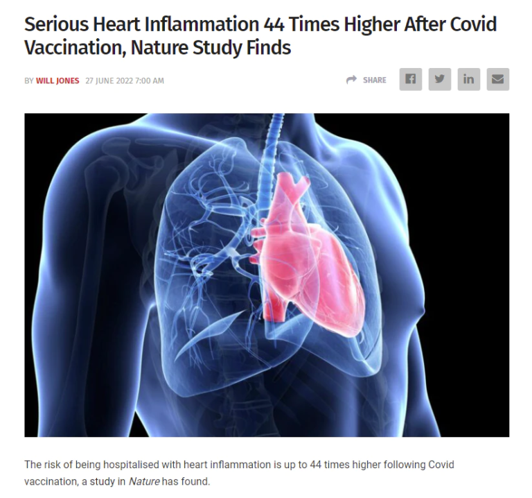 2. Nature誌に掲載された論文によると、ワクチン接種後の心筋炎の割合は、通常の140倍にもなる。これは「わずかに上昇したリスク」とは言えない。