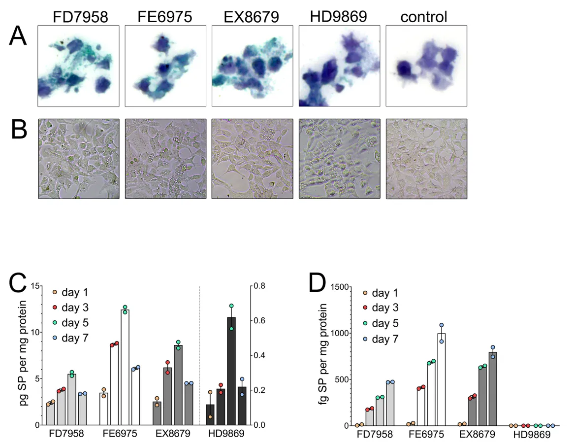 BNT162b2生物製剤をトランスフェクションした後のHEK293細胞におけるスパイクプロテインの生成は緑色で示されている。これは、LNPがペイロードをヒト細胞に正常にシェディングしており、このペイロードが設計通りに細胞の機構(リボソーム)を利用してスパイクプロテインに翻訳されていることを意味する。スパイクは細胞に対して細胞毒性効果(細胞にとって有害=細胞が死滅する)を示し、少なくとも7日間は残留した(残留性)。そして、それはちょうど彼らが測定を止めた時だった。スパイクは細胞が存在していた培地に入り込んだ。それはトランスフェクションされた細胞から放出された。スパイクは細胞膜から切断されることもあるが、完全な形(未切断)でエクソソームに輸送されることもある。