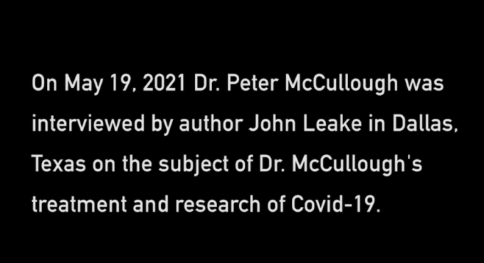 2021年5月19日、ピーター・マッカロー博士は、テキサス州ダラスで、作家のジョン・リーク氏から、マッカロー博士のCOVID-19の治療と研究をテーマにインタビューを受けた。