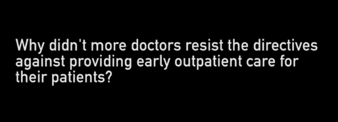 いいですか、早期治療を抑制し、多くの恐怖を与え、入院や死亡の苦しみを与えようとする力は偶然のものではなく、医師たちに恐怖心を抱かせる強力な力なのです。歴史家は時代の流れを調べてみるべきだと思います。
