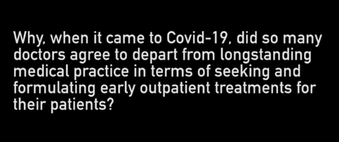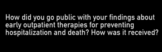 - なぜ、Covid-19に関しては、多くの医師が、患者のために早期の外来治療を求め、策定するという長年の医学的慣習から逸脱することに同意したのでしょうか?(58分54秒)