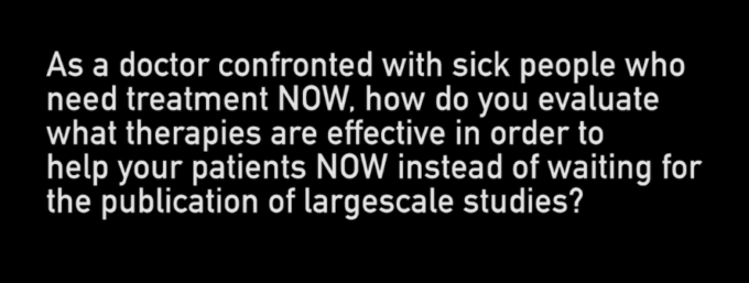- 今すぐ治療を必要とする病人に直面している医師として、大規模な研究の発表を待つのではなく、今すぐ患者さんを助けるために、どのような治療法が有効であるかをどのように評価していますか?