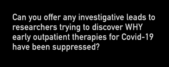 - Covid-19の初期の外来治療がなぜ抑制されているのかを解明しようとしている研究者に、何か調査の手がかりを提供してもらえませんか?