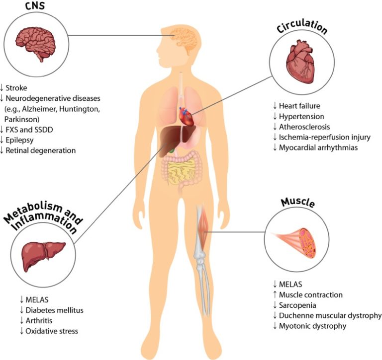 さらに、タウリンはミトコンドリア病、ミトコンドリア脳症、乳酸アシドーシス、脳卒中様エピソード(MELAS)の治療に極めて有効であり、糖尿病などの代謝性疾患や関節炎などの炎症性疾患の治療に新しいアプローチを提供する。