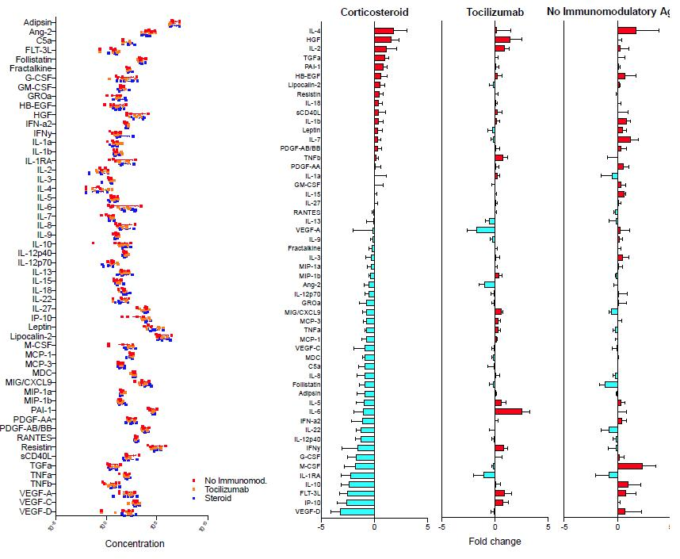 図11. 免疫調節療法に応答した循環中のCOVID-19関連バイオマーカーの比較[197]。