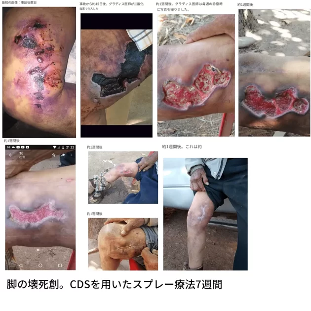 当然ながら私はそれを拒否し、8月にようやくMMSに出会った。配送に非常に時間がかかったため、スプレープロトコルを開始し、低濃度から徐々に濃度を上げながらプロトコル1000を目指すことになった。コラーゲン形成が始まり表皮層がすでに活発に活動していたにもかかわらず、MMSは今でも私を大きく助けてくれている。事故から3ヶ月と1週間が経過した。」