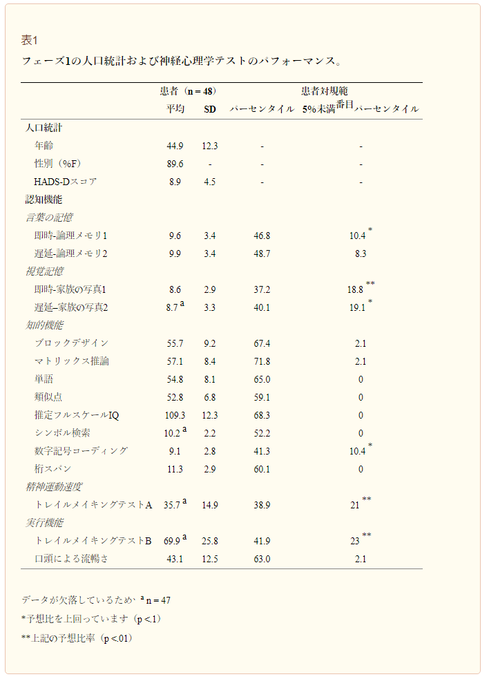 表1 第1相の人口統計学と神経心理学的検査の成績。
