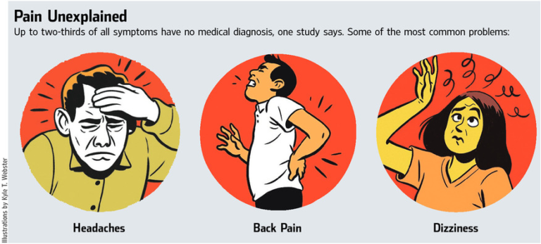 身体的な健康診断を受けると、原因不明の症状を経験するリスクが高まる。例えば、非てんかん性発作と診断された人の約5分の1はてんかんを患っており、心筋梗塞の後では非心臓性胸痛がよく見られ、喘息患者では呼吸機能障害がよく見られる20-22。したがって、説明できる症状と説明できない症状の区分は、その言葉が示すようにそれほど明確ではない。