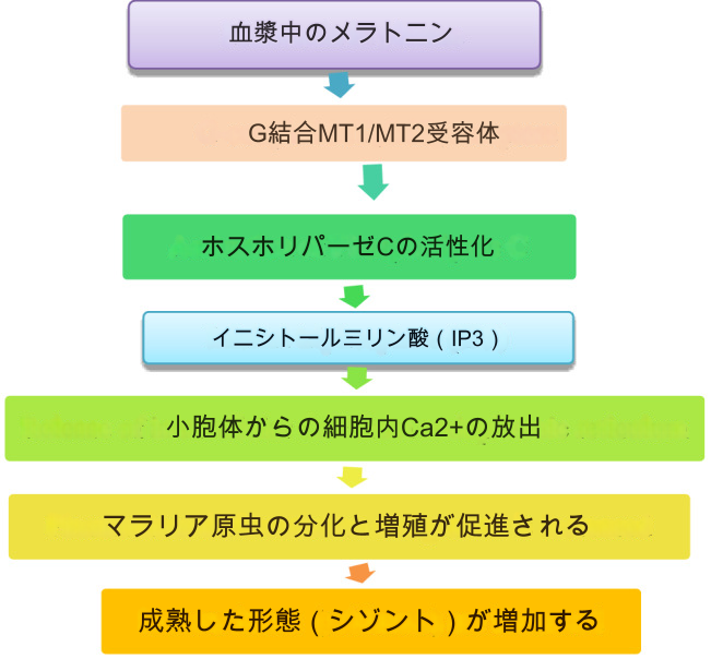 マラリア: メラトニンはマラリア原虫の成長と発達の引き金として働く可能性があり、その阻害が治療戦略となる可能性がある。