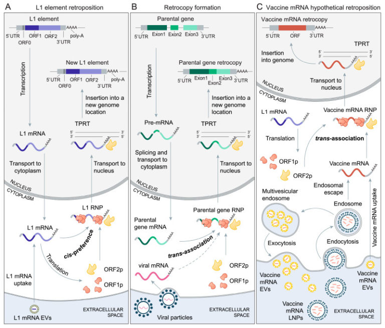 ワクチンmRNAの統合の可能性とその結果生じる表現型は、人体におけるL1レトロエレメントの全体的な動態に大きく依存しており、このセクションで考察するテーマである。