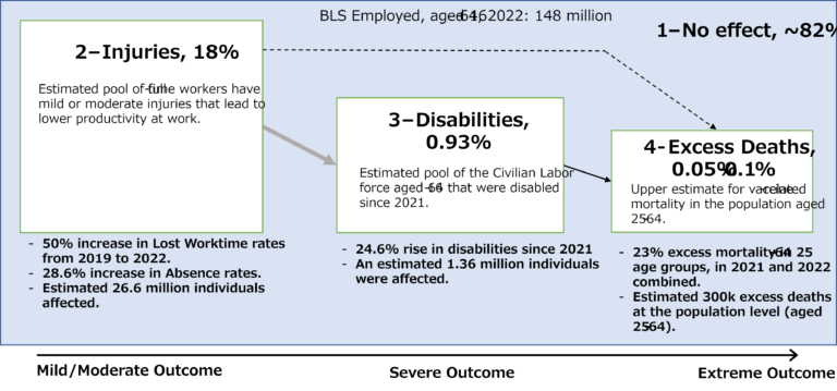- 16~64歳の雇用労働人口の約18%が、2021年に開始されたCOVID-19ワクチン展開プログラムによって負傷したと推定される。